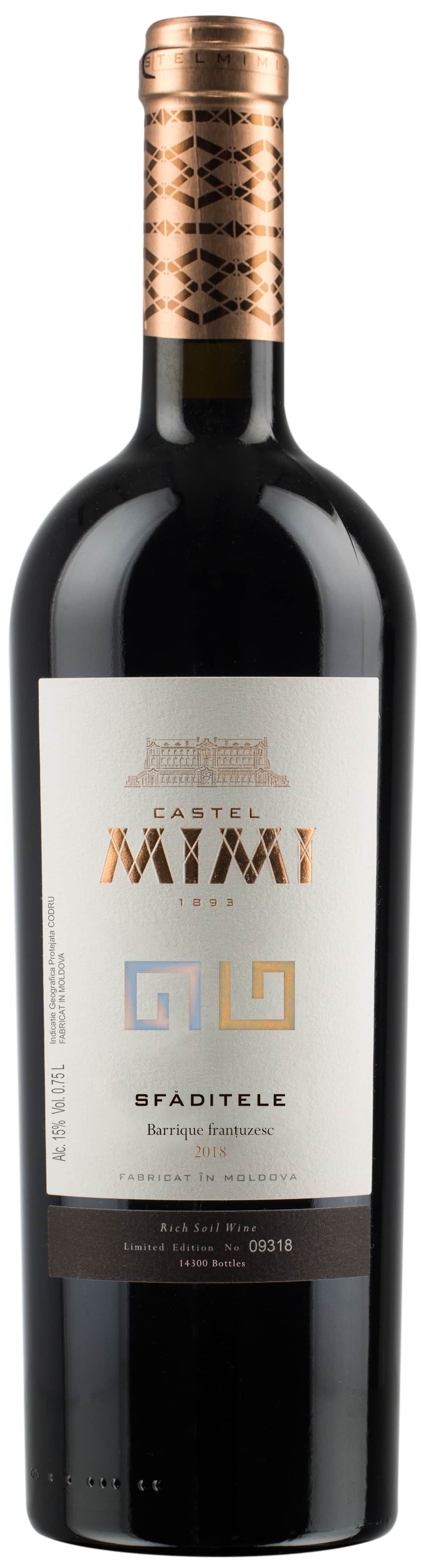 Trata-se de caldo nobre, de coloração rubi intenso, que irradia aromas dominado por notas de cereja e groselha preta oferecendo um sabor de romãs e ameixas frescas, que evolui para um longo final de boca frutado, sublinhado por nuances esfumaçados e taninos finos, mas picantes. Sfaditele é uma mistura de duas variedades indígenas da Moldávia, Feteasca Neagra e Rara Neagra. Passou por um estágio mínimo de 12 meses em barricas de carvalho francês novas. Sfaditele é um símbolo comum no bordado tradicional da Moldávia. Expressa a posição de dois vizinhos briguentos, representados por espirais, uma oposta à outra, que, no entanto, não podem existir separadamente, rejeitando-se e atraindo-se. Harmonização: Pato assado e na panela, Filé Mignon bovino grelhado com legumes na manteiga, refogados diversos e massas com molho vermelho. Sugerimos degustar a temperatura de 18°C em taças lisas, cristalinas e porte grande, as do tipo Bordeaux. O exemplar está pronto para o consumo, mas poderá ser apreciado, ainda em seu ápice, até fins de 2027.