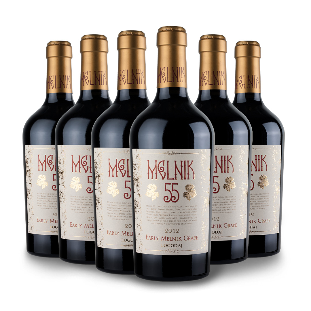 A Siroka Melniska, mais conhecida por Melnik, é uma casta autóctone búlgara. Dá origem a vinhos com ótimo potencial de guarda, que são frequentemente comparados aos famigerados Châteauneuf-du-Pape, pelo seu caráter estruturado e especiado. Eram considerados os favoritos do primeiro-ministro britânico Winston Churchill que encomendava anualmente para sua adega, mais de 500 litros de vinhos feitos exclusivamente com esta variedade. O Melnik 55 é um dos exemplares mais premiados da Bulgária, é daqueles que ganha medalhas e premiações em tudo quanto é concurso. A apresentação também é top, pois a garrafa, proveniente da Itália, é uma graça e alguns clientes já comentaram que após degustar o vinho, a utilizam como castiçal e vaso de flores.