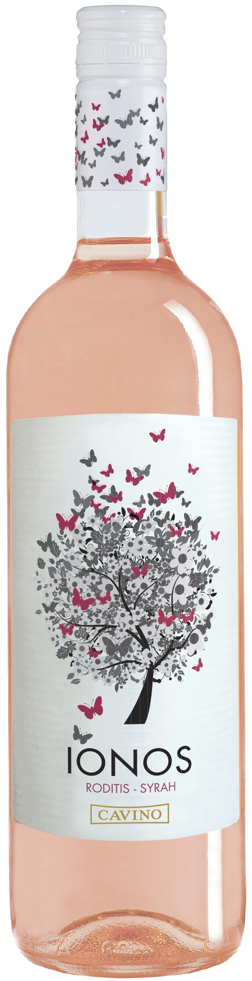 Ionos é uma abreviação para o termo "Kalos Ionos", cuja tradução literal significa "Bom Presságio". Foi elaborado com a uva tinta de altitude chamada Roditis, de vinhas de 30 anos da região de Achaia com um complemento da internacional Syrah. As bagas foram colhidas à mão, já cedo pela manhã quando o clima está ainda fresco sendo levadas diretamente para a prensa a uma temperatura de 15ºC durante até 48 horas para a resolução de estática antes da fermentação. Quanto a sua coloração, esse exemplar apresenta lindo rosa cereja límpido e brilhante com halos prateados que nos faz ter vontade de degustá-lo sem demora. Trata-se de um caldo seco e extremamente leve e delicado que mostra toda a característica do terroir onde nasceu. No nariz apresenta aromas sutis e frescos de licor de cerejas e o frutado é de morangos e cerejas maduras. No palato é muito leve e agradável com notas de frutas vermelhas frescas como o morango e flores vermelhas, é muito equilibrado mostrando acidez na medida. O fim de boca é prazeroso, frutado e mineral. Harmonização: para ser apreciado por si só ou  acompanhar canapés, saladas com frutas e frutos do mar, peixes pequenos e os queijos não muito gordurosos. Também é um ótimo casamento para o risoto de camarão. Deve ser consumido preferencialmente a 11°C e não necessita de aeração prévia em decanter. Sugerimos apreciar em taças de formato mais estreito e de abertura média, isso faz com que os aromas delicados sejam ressaltados facilitando uma melhor percepção. O exemplar está pronto para o consumo, mas pode ser apreciado, ainda em seu ápice, até fins de 2027.