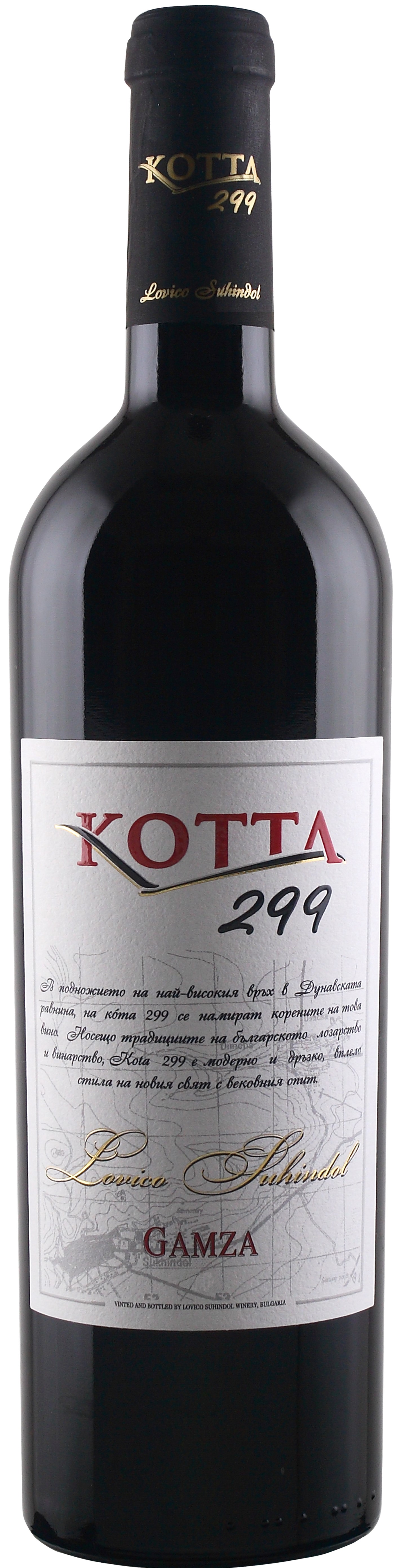 A centenária Lovico Lozari está localizada na planície do Danúbio, na região de Suhindol, com vinhedos no monte Suhindol, antigo vulcão, o qual é o ponto mais alto de toda planície. Este terroir em específico, beneficia-se das cinzas vulcânicas que compõem seu solo, ricas em nutrientes minerais. A casta Gamza, também conhecida por Kadarka é uma variedade autóctone do leste europeu, cultivada na Hungria, Romênia e Bulgária, onde atinge a sua melhor expressão. Lá é considerada o "Orgulho do Norte" e muitos dos melhores vinhos do país são monovarietais, como no caso do nosso protagonista de hoje, o Kotta 299. Elaborado sem filtração, é um vinho muito bem produzido, que traz no aroma frutas vermelhas e negras maduras como groselha, ameixa, cassis, especiarias doces (alcaçuz), chocolate meio amargo, folhas secas, giz (mineral) e uma leve nota floral de violetas. Em boca tem ótima estrutura e integração, acidez na medida certa para combater seus taninos vivos e firmes. Mostra sabores de frutas negras maduras como ameixa, completados por notas tostadas e de chocolate meio amargo. Recomendamos decantação de 25 minutos para que todo seu potencial seja revelado. Para uma experiência ainda mais completa, sirva-o na companhia de pratos à base de carne como escalopes de filé mignon ao molho de gorgonzola e alcachofra, picanha ao forno com batatas ao murro ou carré de cordeiro com redução de vinho do porto. Um exemplar extremamente agradável que está pronto para o consumo, mas pode ser apreciado, ainda em seu ápice, até fins de 2030.