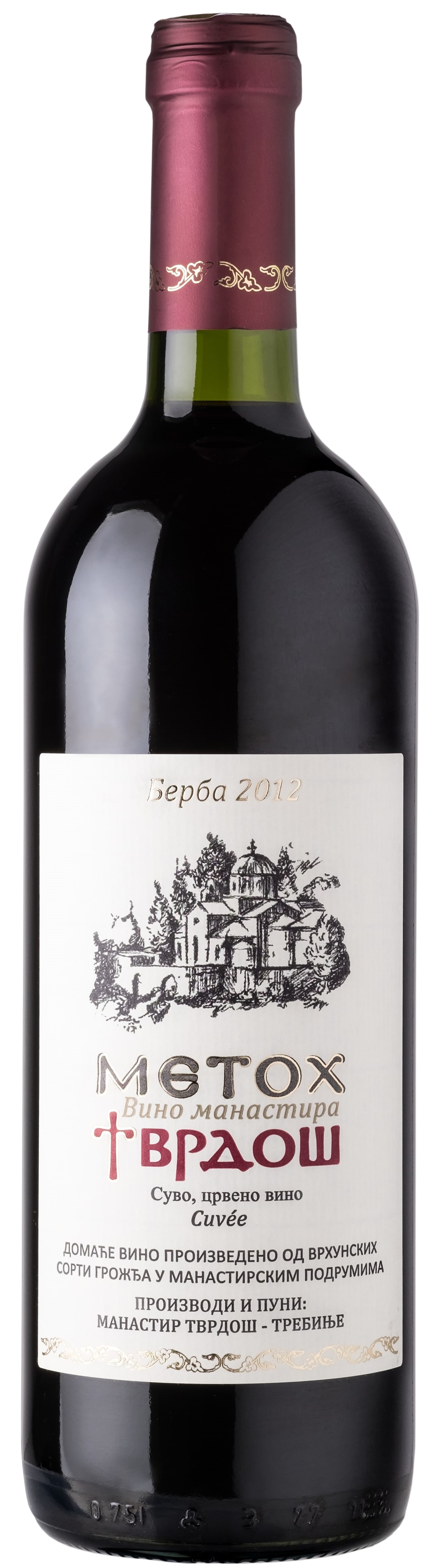 Produzido na região de Trebinje, em Herzegovina, sul da Bósnia e Herzegovina, o Metoh Red Cuvée combina tradição monástica com um perfil moderno e elegante. Cultivado em solos calcários sob forte influência mediterrânea, este vinho expressa todo o potencial do terroir da região. O blend é composto por 50% Cabernet Sauvignon, 30% Vranac, uma emblemática uva dos Bálcãs, conhecida como “Cavalo Preto” e 20% de Merlot, resultando em um vinho equiibrado, agradável, e complexo. O Cabernet aporta estrutura e elegância, o Vranac contribui com acidez, fruta escura, cor e mineralidade, enquanto o Merlot traz maciez e suavidade ao conjunto. Apresenta coloração rubi intensa com reflexos violáceos. No nariz, revela aromas marcantes de frutas negras maduras como amora, mirtilo e cassis, com toques de especiarias e nuances terrosas. Em boca, é de corpo médio a encorpado, com taninos polidos, acidez equilibrada e um final persistente com retrogosto frutado e levemente picante. Com teor alcoólico de 13,7%, o Metoh Red Cuvée é extremamente versátil à mesa. Harmoniza perfeitamente com carnes vermelhas grelhadas em assados robustos, pratos que levam cogumelos, embutidos finos, rabada e ossobuco, além de queijos curados. Sirva entre 17°C e 18 °C em taças lisas do tipo Bordeaux. O exemplar está pronto para ser apreciado, mas poderá ser degustado, ainda em seu ápice, até fins de 2028. Enfim, um vinho raro que reflete a alma da Herzegovina, ou seja, robusto, autêntico, aromático, saboroso e com frescor vibrante.
