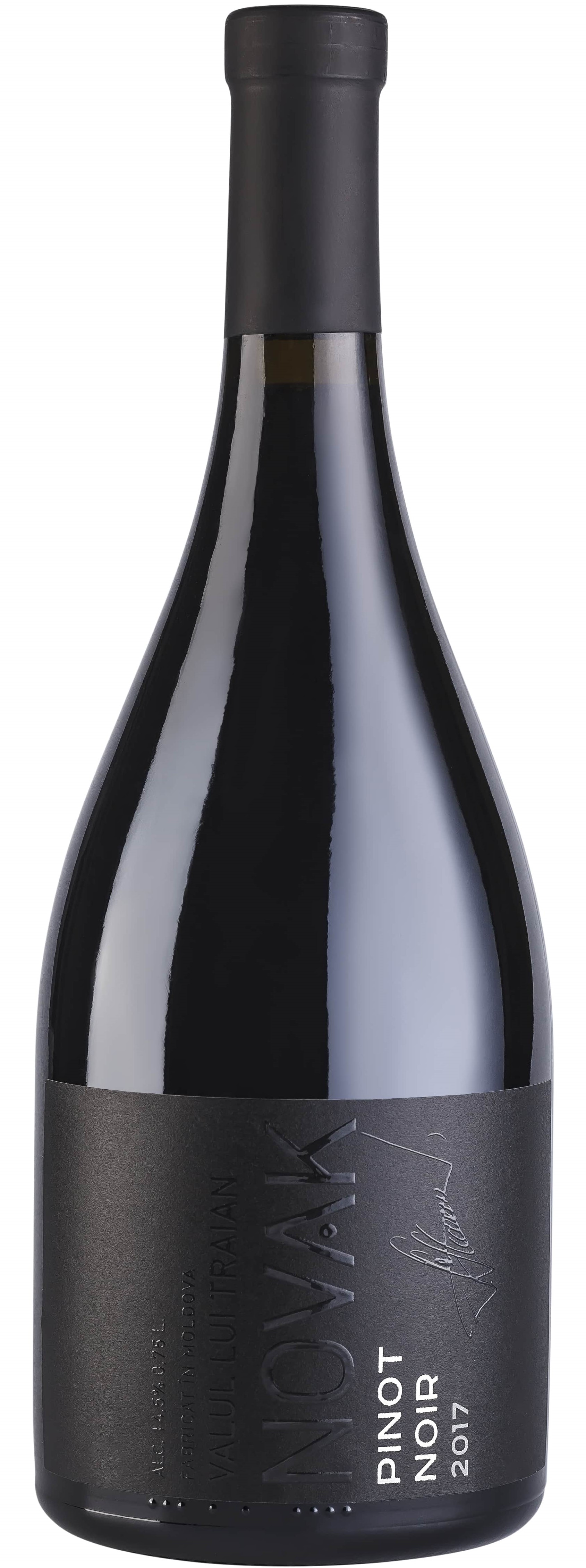 Novak é uma pequena vinícola localizada no Sul da Moldávia. Trata-se de uma adega diferenciada no aspecto de vinificação, pois além de obter tecnologia inovadora, sua produção é relativamente baixa, ou seja, o cuidado e a atenção no preparo do vinho, bem como a seleção dos melhores grãos são efetuados com cuidado redobrado mantendo a alta qualidade nos exemplares produzidos. O belo varietal de Pinot Noir mostra elegância e estrutura em um conjunto harmônico e agradável. No processo de vinificação, permaneceu por 12 meses em barricas novas de carvalho francês Seguim Moreau onde adquiriu notas refinadas e maciez. Quando servido, revela delicada cor rubi e aroma requintado. O ataque é de deliciosas frutas maduras, entre elas, cerejas e framboesas, entrelaçadas a pimenta negra moída. Algumas especiarias doces como chocolate também são nítidas deixando-o bem convidativo. O palato é elegante, de sabor sofisticado, mistura frutas com notas defumadas, taninos amigáveis e ótima acidez. Possui um desfecho longo e persistente, com traços de flores e ervas finas no final de boca. Harmonização: É um vinho elegante, de tom delicado, porém com grande potência gastronômica. Sirva com queijos, vegetais grelhados, risoto de funghi e carnes magras no geral. Experimente também com pizzas diversas. Aprecie a 17°C, em taças lisas e cristalinas do tipo Borgonha, aquelas com bojo grande e arredondado. O exemplar está pronto para o consumo, mas pode ser degustado ainda em seu ápice até fins de 2027.