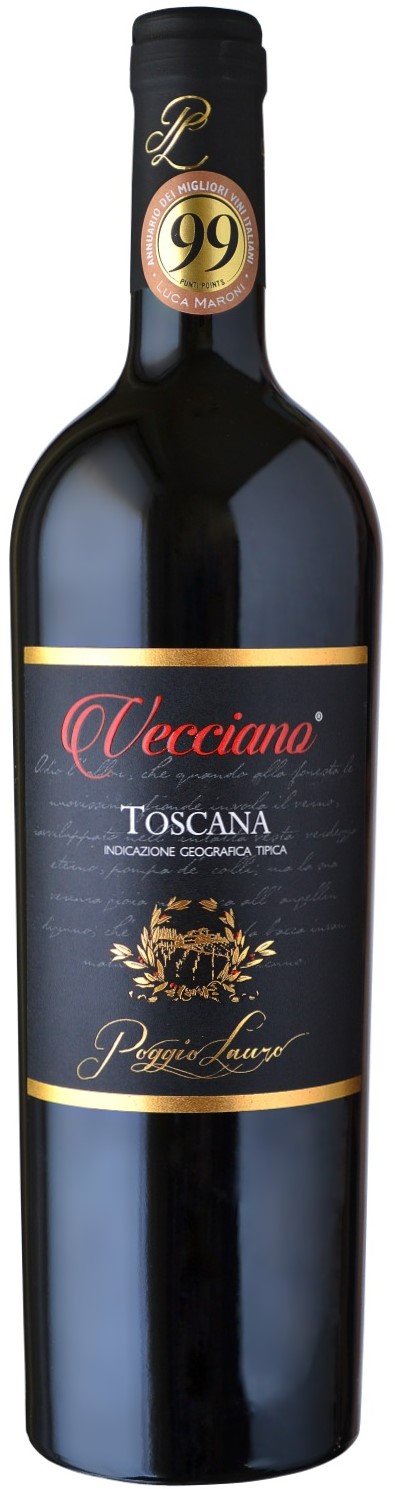 A vinícola fica no município toscano de Cetona onde os produtores cultivam castas clássicas e produzem vinhos de alta qualidade há várias gerações. O foco está na gestão sustentável e natural promovendo o potencial autêntico do terroir. No Poggio Lauro Vecciano, Sangiovese e Cabernet Sauvignon, de colheita manual, se unem. Ambas as variedades amadurecem de forma ideal no clima da Toscana e produzem frutos muito aromáticos. Os produtores elaboram o vinho lentamente com foco na menor intervenção possível. Posteriormente, estagia durante 12 meses em barricas de carvalho da Eslavônia. Na taça, o Poggio Lauro Vecciano é visualmente atraente, pois seu denso e escuro tom violeta é uma indicação clara de sua opulência. Os aromas mostram notas maduras de amoras assim como um floral de violetas e a especiada baunilha que instiga você a querer apreciá-lo sem demora. Imediatamente após o primeiro gole, o vinho mostra seu caráter opulento e ao mesmo tempo harmonioso. O tanino macio e aveludado confere elegância. A fruta, antes sentida no nariz, reaparece e se funde com alguma especiaria da madeira. O retrogosto é fascinante, longo e depois de um tempo, vai desaparecendo lentamente deixando um toque de frutas escuras bem maduras. Não é a toa que foi agraciado com a altíssima nota de 99 pontos do famoso crítico italiano Luca Maroni. O Vecciano é o vinho ideal para momentos especiais, á mesa. Acompanha perfeitamente as carnes de cordeiro, entrecôte bovino grelhado e pastas com molho de carne e tomate. Ele vai muito bem junto aos antepastos de praticamente todos os tipos. Ele está pronto para ser consumido, mas pode ser apreciado, ainda em seu ápice, até fins de 2028.