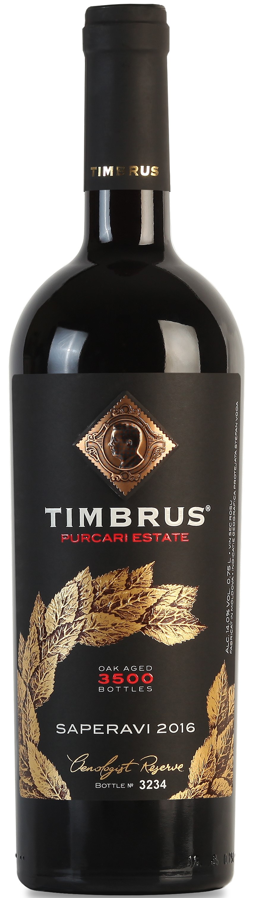 Timbrus está estabelecida na região de Purcari e criou fama por produzir vinhos nobres, reconhecidos no mundo todo. O trabalho excelente do enólogo Manuel Ortiz associado às características do Terroir moldavo, são os principais fatores de qualidade levando em conta as propriedades dos solos locais e a altitude, que se encontra no mesmo paralelo da famosa região de Bordeaux, na França. Trata-se de um grande varietal de Saperavi, casta tintureira proveniente da Georgia. É estruturado, de bela cor rubi e extrema limpidez. Maturou por 24 meses em barricas de carvalho francês e descansou nas caves antes de ser lançado no mercado. O nariz é intenso, com predominância de cerejas, mirtilos e framboesas doces. Em boca é seco, segue frutado e completado por especiarias e ervas finas. Possui taninos firmes, ótima acidez e mostra estrutura e equilíbrio. Após algum tempo na taça, uma nota de erva doce aparece bem acentuada deixando um acabamento revigorante e um final de boca bem interessante. Harmonização: É um vinho que casa muito bem com queijos fortes, tábua de frios, pizzas condimentadas, carnes grelhadas e assadas e pastas no geral. Aprecie a 18°C em taças lisas, cristalinas e de grande porte. Se possível, deixe respirar por uma hora, fará muito bem, pois ele se abre exalando novos elementos aromáticos, além de sabores bem complexos. O exemplar está pronto para o consumo, mas pode ser degustado ainda em seu ápice até fins de 2028.